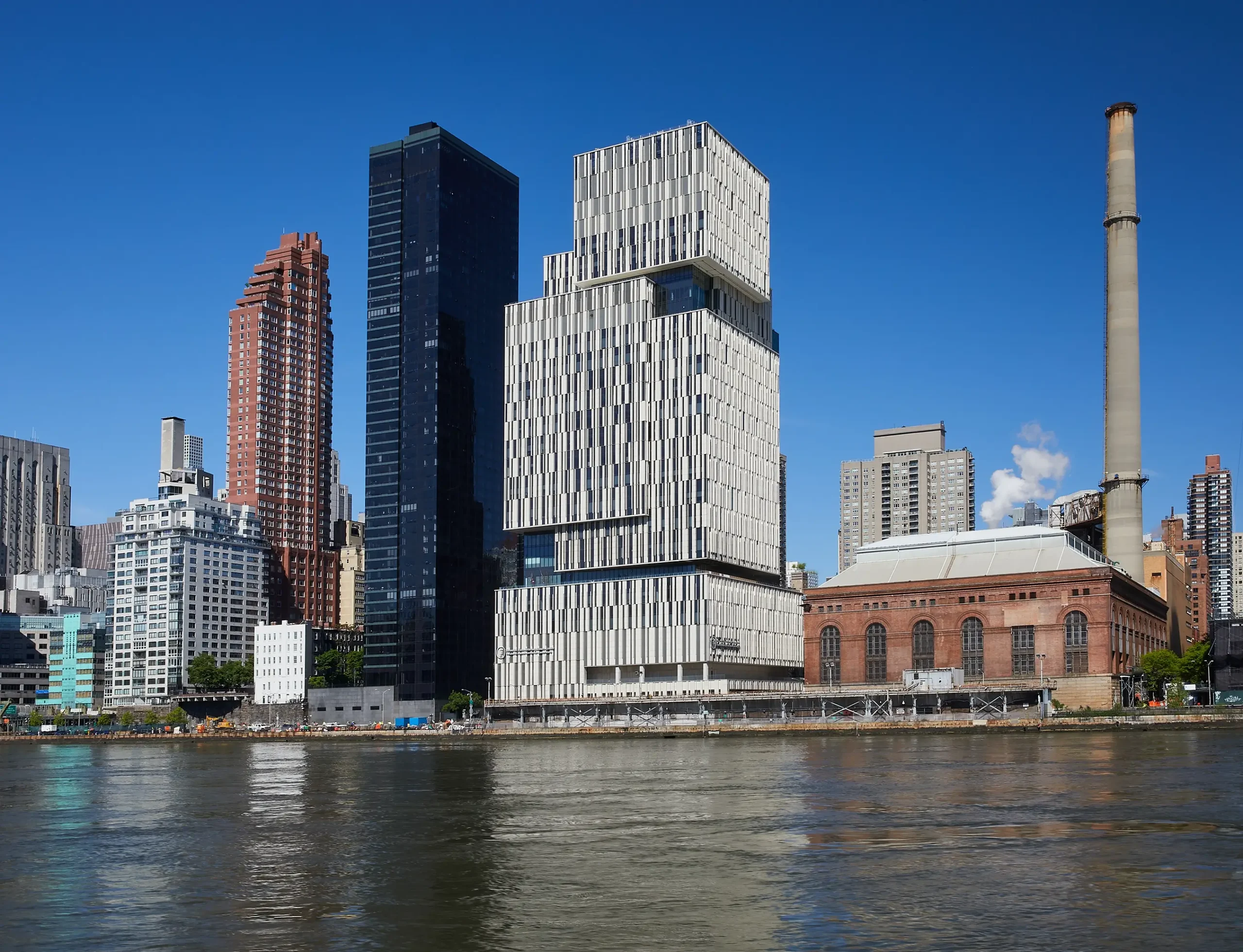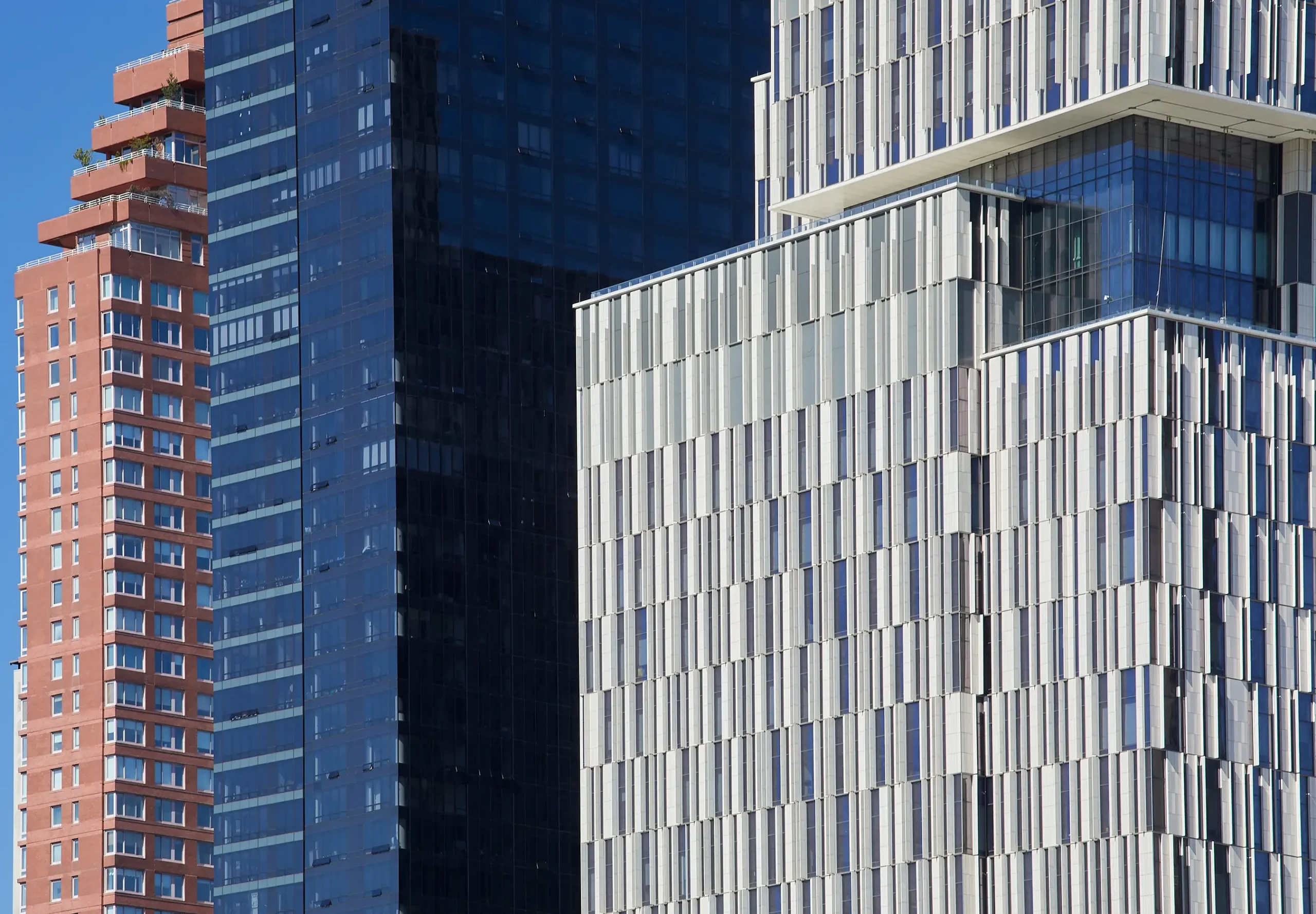 To ensure that it blends in with its neighbourhood, the imposing 25-storey building with 70,000 square metres of floor space was divided into smaller building volumes to visually reduce its mass. The design of the outer skin emphasises this impression: light-coloured terracotta louvres and panels in various depths and textures alternate with different window sizes in a wealth of variations, conveying an elegant lightness that characterises the large-volume building as translucent and accessible. The subtle colour scheme interacts with the natural, robust ceramic material to create an overall impression that is both dynamic and expressive.