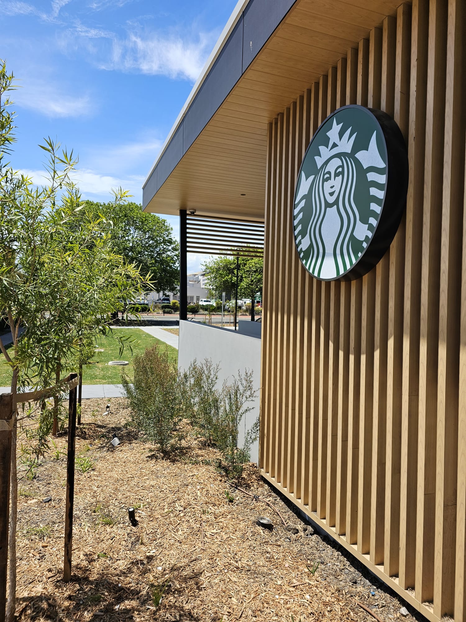 The New Starbucks cafe in Warrawong features WoodEx cladding and batten profile, creating an inviting look that is perfect for a coffee break!