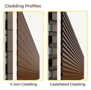 WoodEx: Timber-Look Aluminium V-Join Cladding, Castellated Cladding & Battens